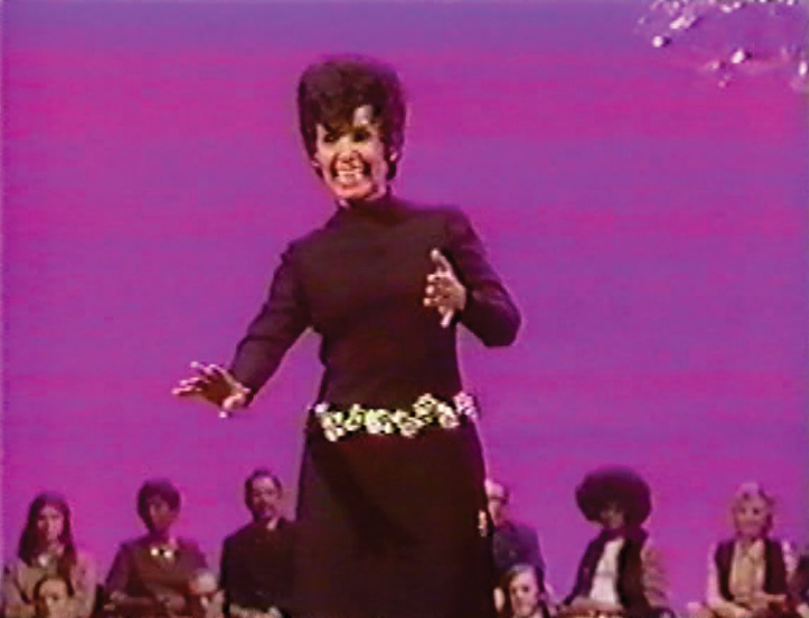 An elegant screen worn outfit from Horne's 1970 TV concert ‘Harry and Lena’ with Harry Belafonte. Outfit consists of a black double-knit tabard dress with side slits, with gold lame and rhinestones in a floral pattern applied around the waist, with Richard Tam and I. Magin & Co labels sewn into the inside near the collar; along with matching black pants with wide cuffs, with the same lame and rhinestone applique along the sides. Richard Tam was a well known San Francisco designer in the late 60s and early 70's who created high end fashion for socialites and celebrities alike. The ensemble is worn during the last 20 minutes of the concert when Horne performs ‘The First Time Ever I Saw Your Face’ and ‘I Want To Be Happy’ among other songs with Belafonte. It is the only concert worn piece from Horne known to be available in the collecting market. Accompanied by a DVD copy of the concert, a TV Guide from March of 1970 featuring an article about the concert with an image of Horne in the outfit, the original soundtrack LP of the concert featuring images of Horne in the outfit on the back cover, and a copy of Horne's biography 'Stormy Weather' which pictures her wearing the outfit on one of the photo pages. Provenance : Estate of Lena Horne, Doyle Auctions, 2011.
