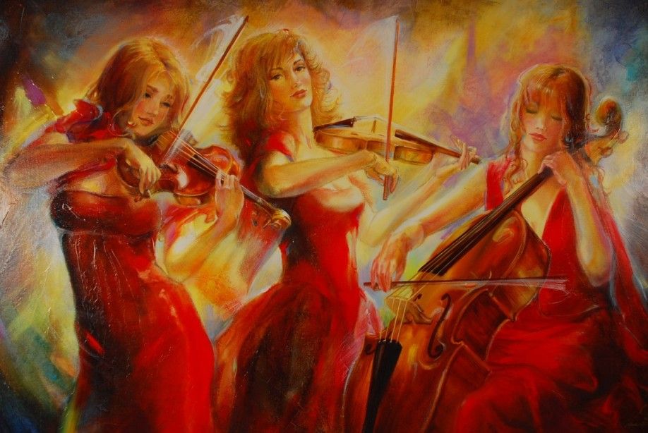 Lena Sotskova, entitled: Concert, Limited Edtion Archival pigments on canvas, hand overpainted by the artist. Artwork is hand signed and numbered by the artist, also is stamped by the publisher. on the back. Edition 32/75. Image size 40" x 64". Framed