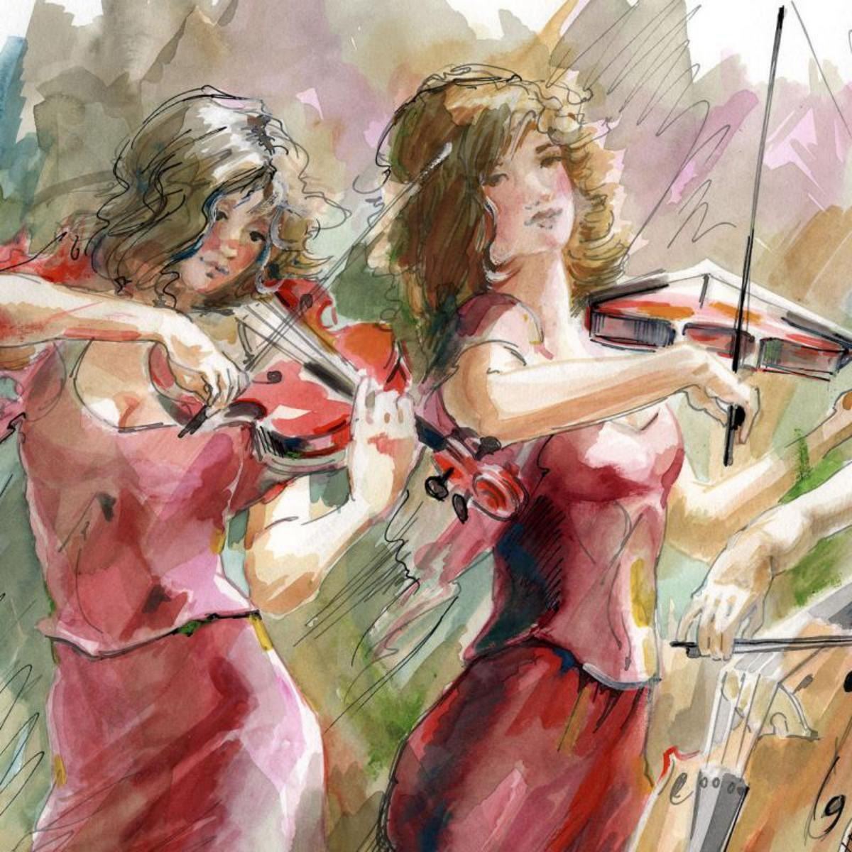 Lena Sotskova, "Concert" Mixed Media Original Painting, Hand Signed and with COA.