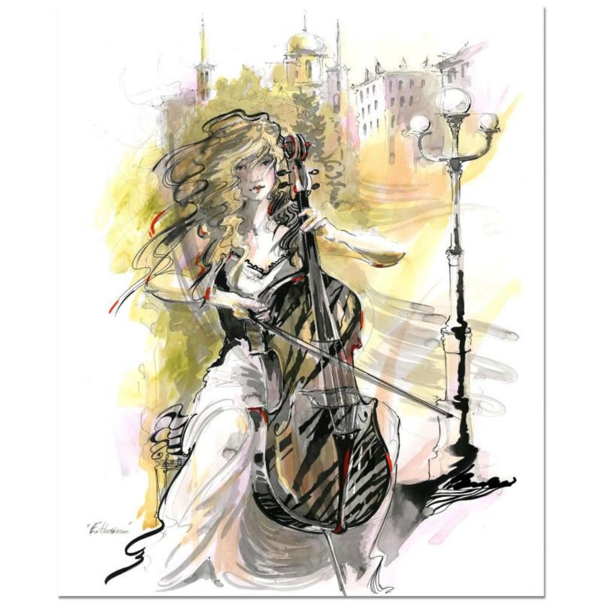 Lena Sotskova, "Enthusiasm" Mixed Media Original Painting, Hand Signed and with COA.