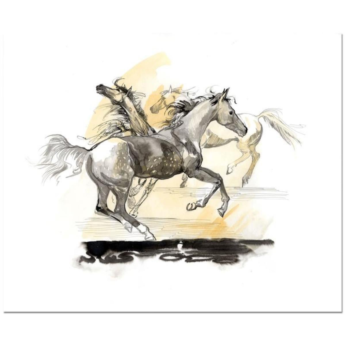 "Joy" is an original painting, mixed media (ink and gouache) on vellum art paper, by Lena Sotskova. This piece is hand signed by the artist, hand titled, and accompanied by a certificate of authenticity. Measures approximately 14" x 17". Reference #: 235228