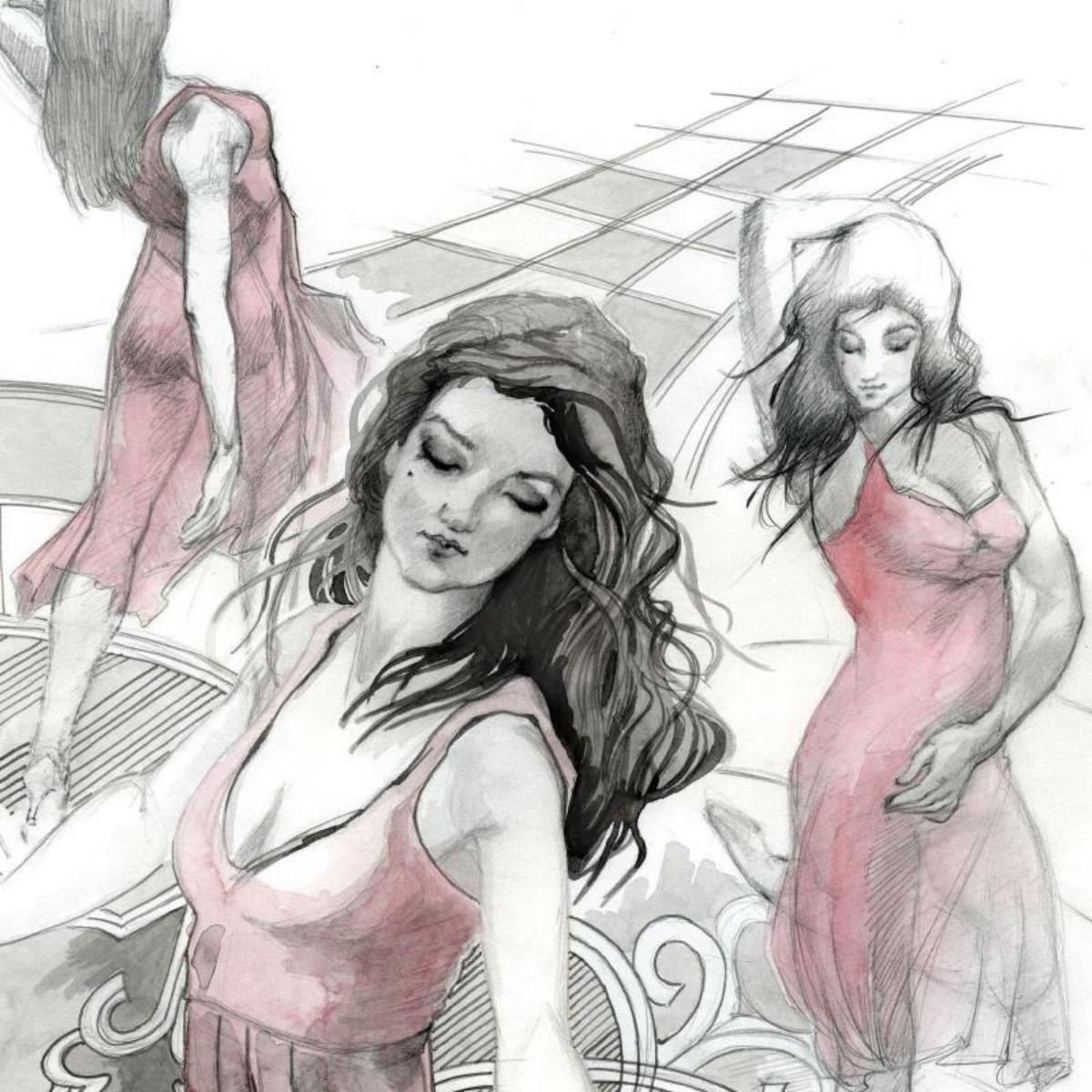 "Little Ruby Dress" is an original painting, mixed media (ink and gouache) on vellum art paper, by Lena Sotskova. This piece is hand signed by the artist, hand titled, and accompanied by a certificate of authenticity. Measures approximately 17" x 14". Reference #: 235230