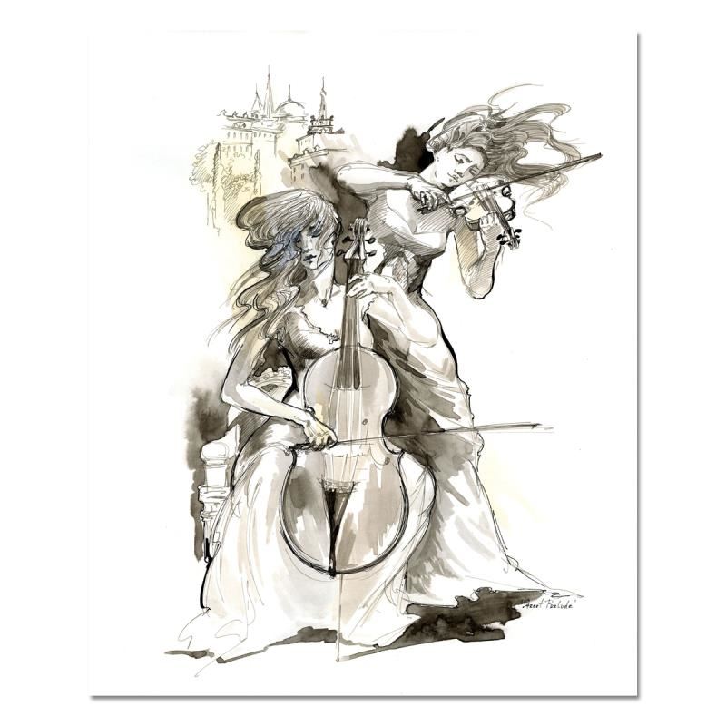 "Street Prelude" is an original painting, mixed media (ink and gouache) on vellum art paper, by Lena Sotskova. This piece is hand signed by the artist, hand titled, and accompanied by a certificate of authenticity. Measures approximately 17" x 14".