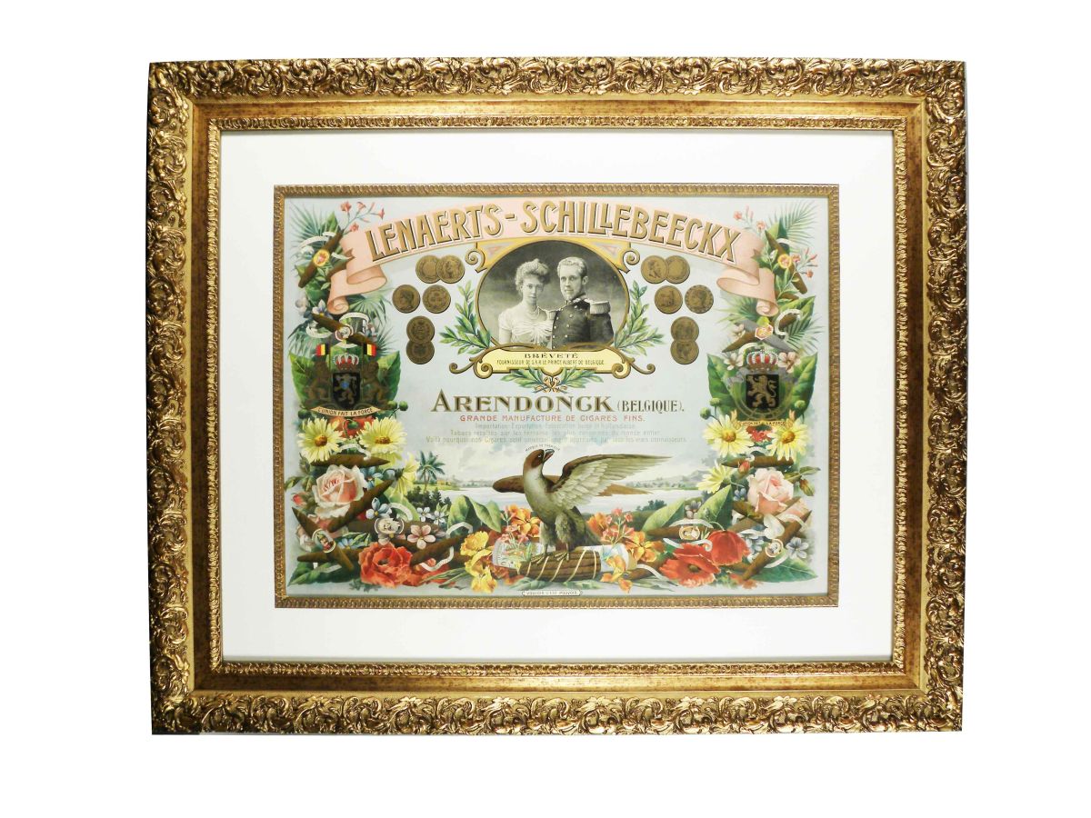 Lenaerts-Schillebeeckx Cigars Gold Leaf Paper Sign, Belgium. In contemporary frame, mint condition. 28 X 21 inches image only.
