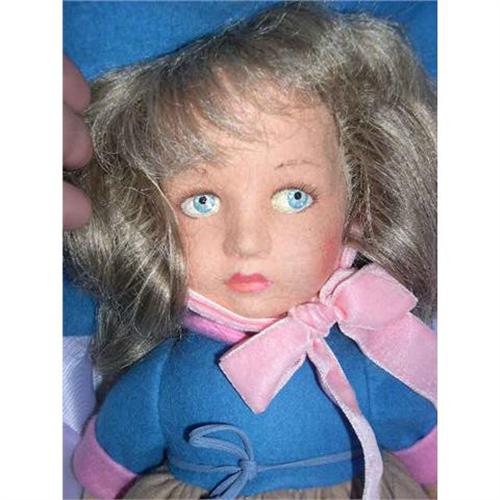 Here's a great Lenci made in Italy. She is 21" and in all original. I must have had a catalog at one time and had her name written down as Livinia. She's never been out of her case. The case is blue with the front that has a gold clasp and it splits to open. The inside has a white lining and the doll is secured in the box. I'm not sure of the date when the dolls in the blue cases with the white lining were produced. The Blue Book says production for modern Lenci was 1979 on. The doll has a head that turns and legs that swivel. The arms are floppy jointed. She is all original. I had to hold up the edge of her hat so you could see her face. She has her paper label from Lenci with her number on it. Her outfit is great as you can see in the pictures. She is from a smoke free environment. If you can love her, please bid. Buyer to pay $25 for U.S. shipping, insurance and handling. Thanks for viewing.