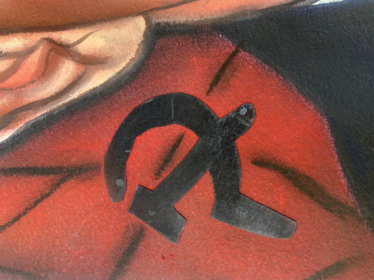A pastel & watercolor portrait with applique of Vladimir Lenin , first Chairman of the Soviet Union. 24x18" on deckled fine art paper, by Anonymous