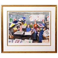 Lennart Jirlow, "Tryckeriet", färglitografi, HC, 45*60 cm. D...