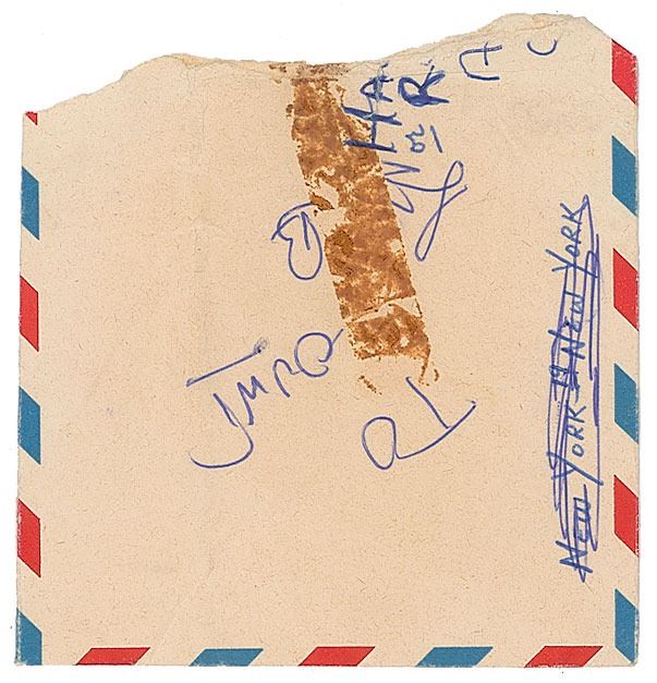 A fragment of an airmail envelope inscribed “To Count” and signed “Len B.”