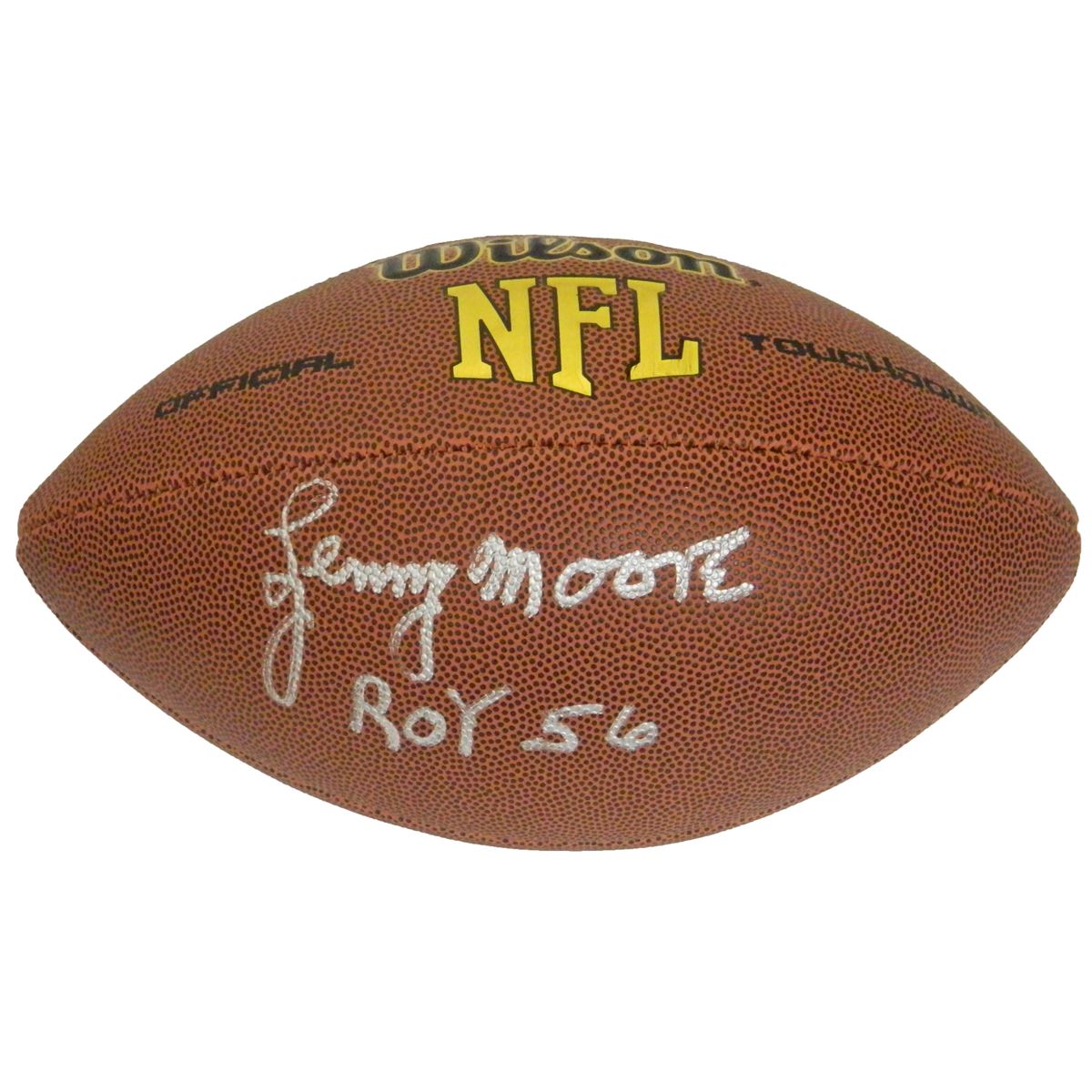 Lenny Moore signed Wilson Touchdown full size NFL football with 'ROY 56' inscription. Item comes with a Schwartz Sports Memorabilia tamper-proof numbered hologram and Certificate of Authenticity which can be verified online.