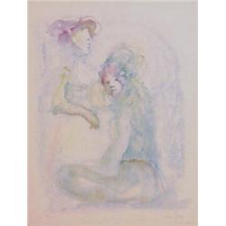 TWO WOMEN IN BLUE, color lithograph, signed in pencil, the numbered edition 150 on Japan paper, sheet 25 1/2 x 19 1/2", crease on lower right corner. $400/600