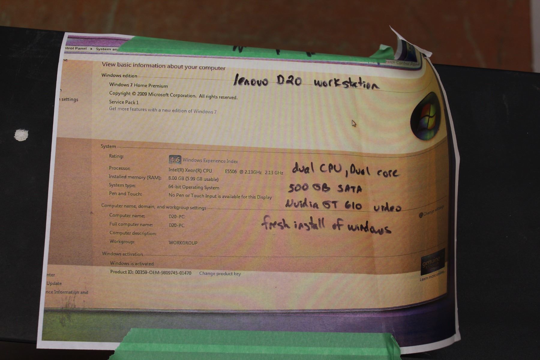 *Lenovo D20 Workstation Computer - Untested