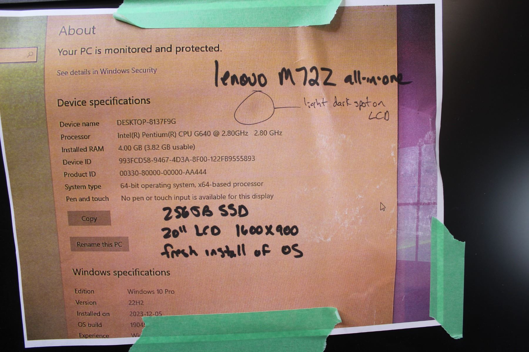 Lenovo M72Z All-In-One Computer w/ Keyboard - Complete & Working