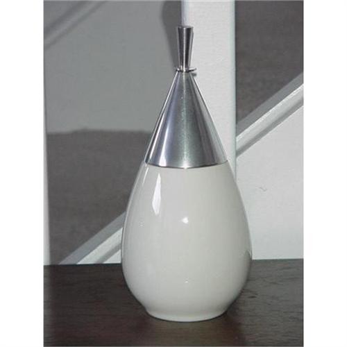 A 1960's Lenox china and sterling box, 7 1/4" tall, 3" in diameter. The sterling silver lid is signed Towle, and at the very top there is a dark green enameled dot. A very handsome piece of modern design suited for today's contemporary interiors. The condition is very good, the Lenox mark is dark green and the china is without flaw.