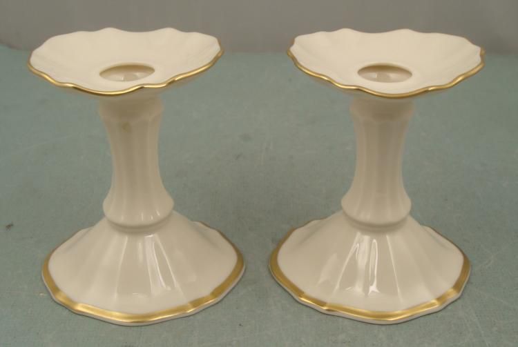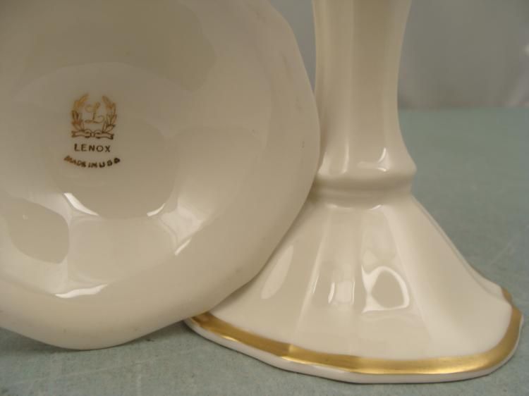 Lenox Candle Sticks Gold Trim 4" Tall 3/4 diameter * Condition: Excellent Made by: Lenox - hallmarked on the bases Made in USA Size: 4" tall 3/4 candle diameter