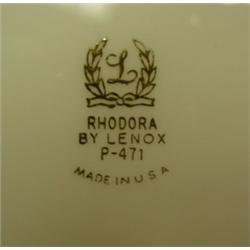 Lenox "Rhodora" dinnerware. Six 10-1/2" dinner plates, six 8-1/4" plates, two 6-1/4" plates, six cups and six saucers. Condition: All are very good.