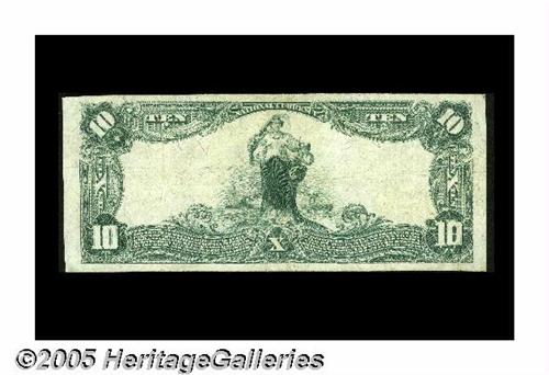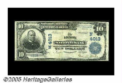 <B>Lenox, MA</B></I> - $10 1902 Plain Back Fr. 626 <B>The Lenox NB</B></I> Ch. # 4013<BR>This was the only issuing bank located in this Berkshire County locale and left only $2,720 of its large emissions in the hands of the public by 1935. <B>Very Fine.</B></I>