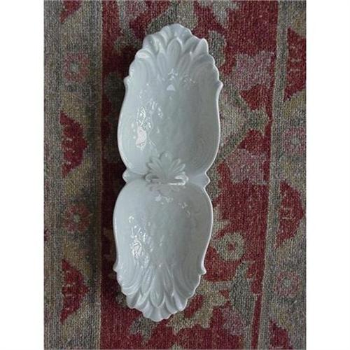 A Lenox china double pineapple dish, 15" long, 5 1/8" wide, with center handle. The pineapple is the international symbol of welcome and filled with an assortment of goodies will help make your guests feel welcome. Condition is very good, no flaws.