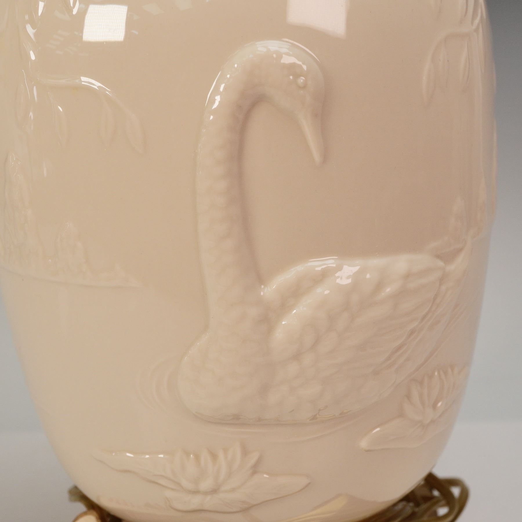 Lenox Porcelain Table Lamp with Swan Relief on Brass Base