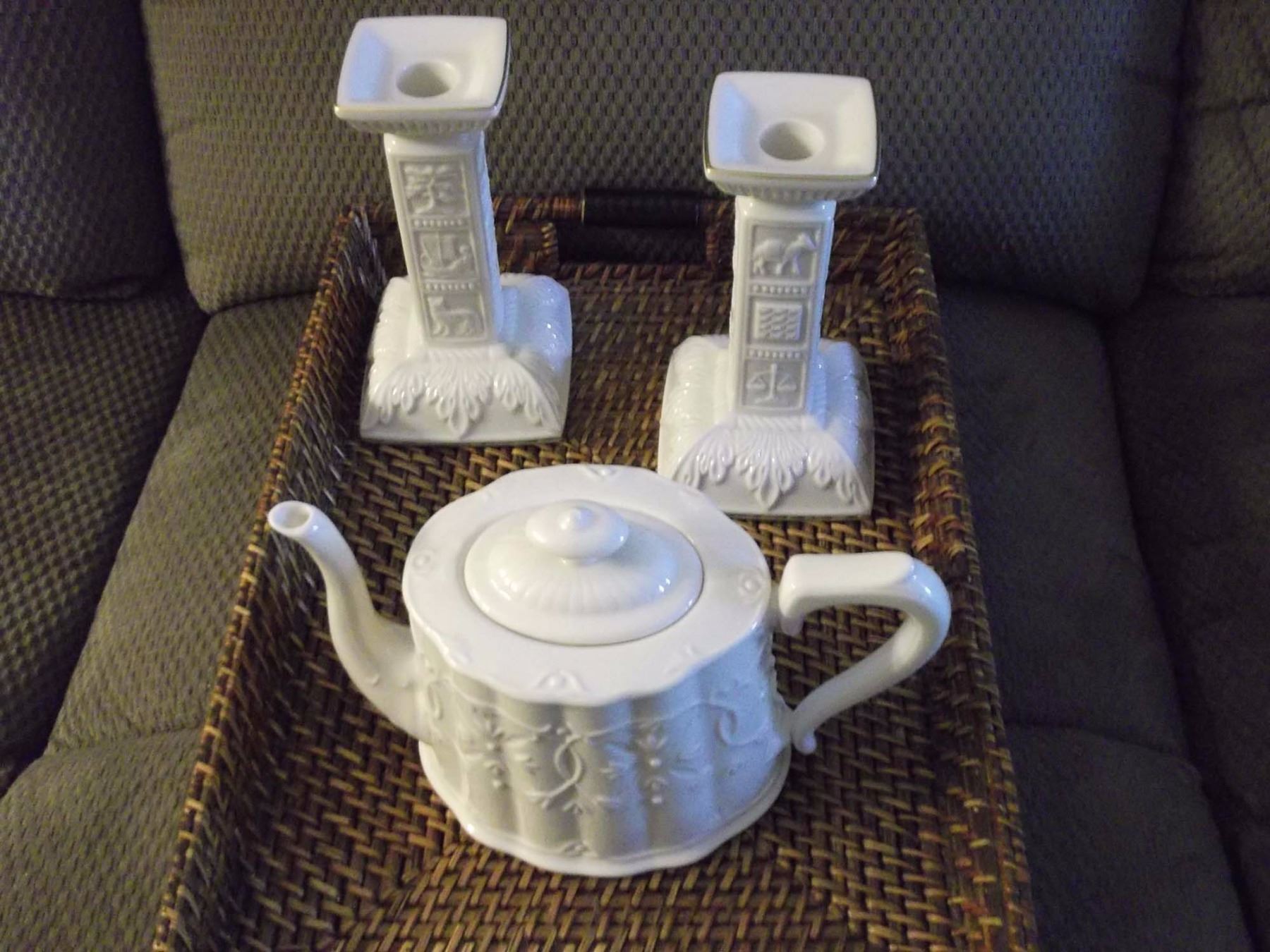Lenox "Sabbath" Candle Holders & "Gold Finger" Tea Pot With 24 KT