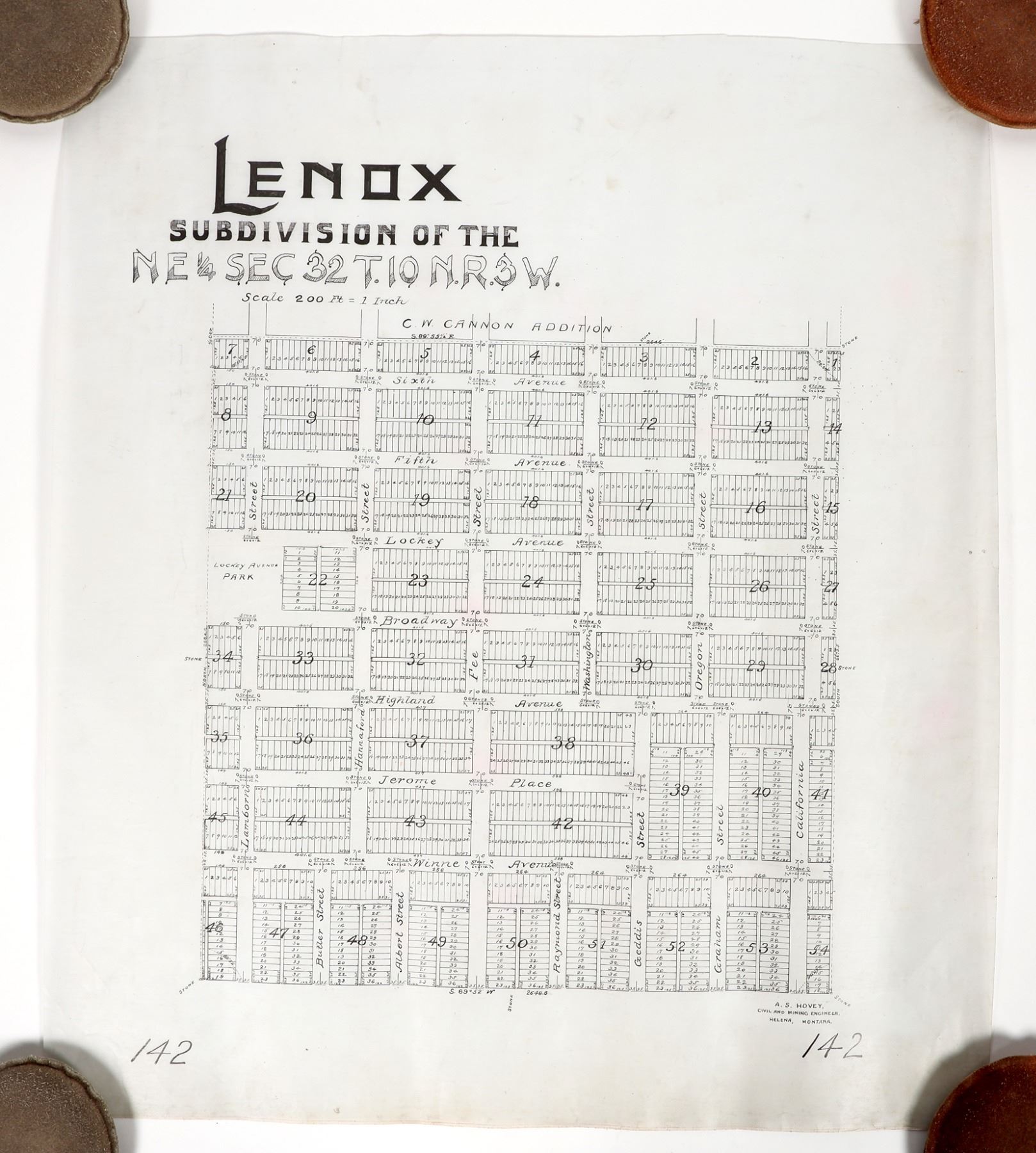Map of Lenox subdivision, Helena by A S Hovey, Helena. 22x19.5". 200ft=1".