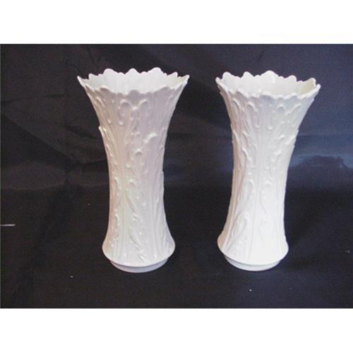 Pair of Lenox vases embossed foliage on cream, 8 1/2" tall. Condition is very good.