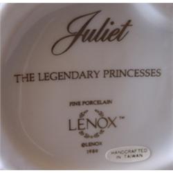 Lenox porcelain statuette of Juliet. Stands 8 1/2" tall and is marked on bottom "Juliet-The Legendary Princess-Fine Porcelain" along with the Lenox crest.