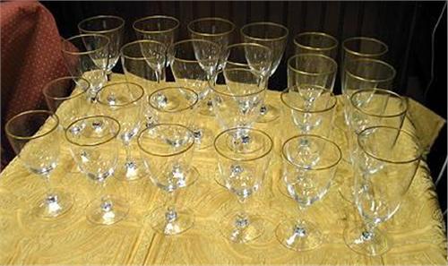 Lenox stemware, gold accented rims, no chips or cracks 8 goblets, 8 white wines, 8 red wines no chips or cracks with the Lenox etched logo on foot