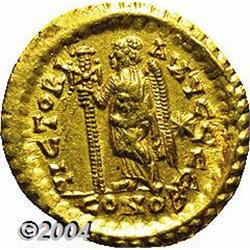 <B>Leo I.</B></I> A.D. 457-474. AV solidus (20 mm, 4.47 g). Constantinople, A.D. 462-473. Diademed, helmeted and cuirassed bust facing slightly right, holding spear and shield decorated with a horseman spearing fallen enemy / Victory standing left, holding long jewelled cross; star in right field; E/CONOB. RIC 605; Depeyrot 93/1. XF. <BR><I>From the Geneva Collection.</B></I> <BR><BR><B>Important notice:</B> Heritage usually auctions material at the rate of 200-250 lots per hour. On some occasions eBay Live bid software or the Internet may not be able to keep up with the pace of the auction. We recommend placing a realistic absentee bid now as insurance to avoid disappointment. Occasionally the auctioneer may eliminate or reject an eBay Live bid, and the auctioneer may also reopen a lot after the close of the eBay live bidding (usually because we missed an audience bid), and may reject your bid even if it shows you as the winning bidder. By bidding via eBay Live, you agree that Heritage may award the lot to another bidder at its sole discretion under the circumstances described above or any other reasonable circumstances. Since eBay bids are not shown to us until we open the lot on the floor, we treat those bids just like floor bids. In most cases the floor responds before the eBay bid is presented to us, due to Internet lag time, so for consistency we have made it a policy that floor bids are always considered first over tie eBay live bids. Also please note that all Heritage lots purchased through eBay Live carry a 20% Buyer's Premium. Please make sure you read the Terms and Conditions before you bid.