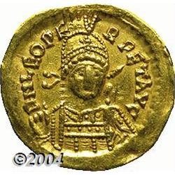 <B>Leo I.</B></I> A.D. 457-474. AV solidus (20 mm, 4.40 g). Constantinople, A.D. 462-473. Diademed, helmeted and cuirassed bust facing slightly right, holding spear and shield decorated with a horseman spearing fallen enemy / Victory standing left, holding long jewelled cross; star in right field; I/CONOB. RIC 605; Depeyrot 93/1. VF, obverse graffito. <BR><I>From the Geneva Collection.</B></I> <BR><BR><B>Important notice:</B> Heritage usually auctions material at the rate of 200-250 lots per hour. On some occasions eBay Live bid software or the Internet may not be able to keep up with the pace of the auction. We recommend placing a realistic absentee bid now as insurance to avoid disappointment. Occasionally the auctioneer may eliminate or reject an eBay Live bid, and the auctioneer may also reopen a lot after the close of the eBay live bidding (usually because we missed an audience bid), and may reject your bid even if it shows you as the winning bidder. By bidding via eBay Live, you agree that Heritage may award the lot to another bidder at its sole discretion under the circumstances described above or any other reasonable circumstances. Since eBay bids are not shown to us until we open the lot on the floor, we treat those bids just like floor bids. In most cases the floor responds before the eBay bid is presented to us, due to Internet lag time, so for consistency we have made it a policy that floor bids are always considered first over tie eBay live bids. Also please note that all Heritage lots purchased through eBay Live carry a 20% Buyer's Premium. Please make sure you read the Terms and Conditions before you bid.