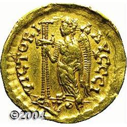 <B>Leo I.</B></I> A.D. 457-474. AV solidus (20 mm, 4.40 g). Constantinople, A.D. 462-473. Diademed, helmeted and cuirassed bust facing slightly right, holding spear and shield decorated with a horseman spearing fallen enemy / Victory standing left, holding long jewelled cross; star in right field; I/CONOB. RIC 605; Depeyrot 93/1. VF, obverse graffito. <BR><I>From the Geneva Collection.</B></I> <BR><BR><B>Important notice:</B> Heritage usually auctions material at the rate of 200-250 lots per hour. On some occasions eBay Live bid software or the Internet may not be able to keep up with the pace of the auction. We recommend placing a realistic absentee bid now as insurance to avoid disappointment. Occasionally the auctioneer may eliminate or reject an eBay Live bid, and the auctioneer may also reopen a lot after the close of the eBay live bidding (usually because we missed an audience bid), and may reject your bid even if it shows you as the winning bidder. By bidding via eBay Live, you agree that Heritage may award the lot to another bidder at its sole discretion under the circumstances described above or any other reasonable circumstances. Since eBay bids are not shown to us until we open the lot on the floor, we treat those bids just like floor bids. In most cases the floor responds before the eBay bid is presented to us, due to Internet lag time, so for consistency we have made it a policy that floor bids are always considered first over tie eBay live bids. Also please note that all Heritage lots purchased through eBay Live carry a 20% Buyer's Premium. Please make sure you read the Terms and Conditions before you bid.