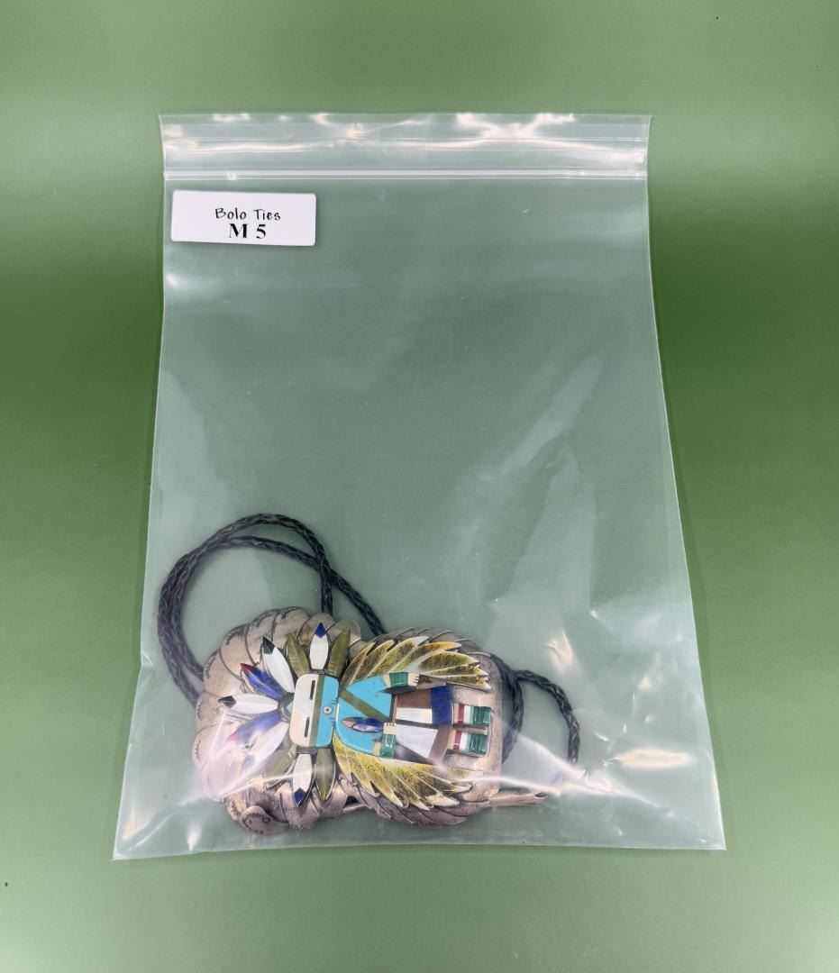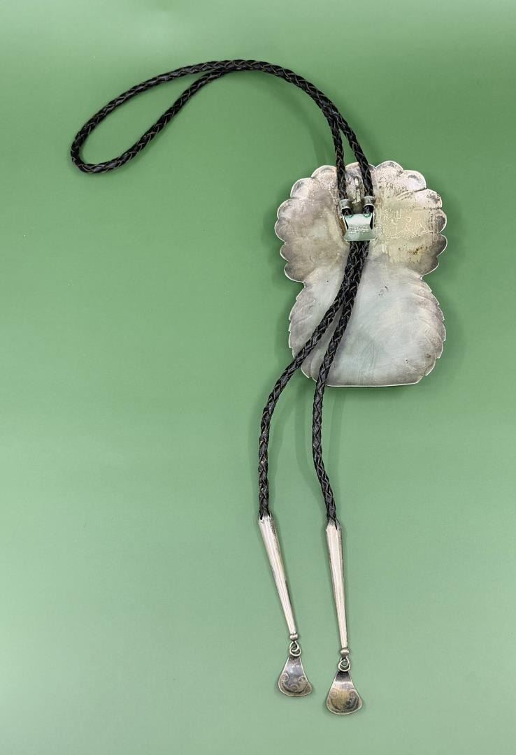 Phenomenal and Large. Gorgeous craftsmanship. Signed with cactus and mountains as shown. Attributed to Leo & Ida Poblano. Depicting a Shalako. 18 5/8" long.