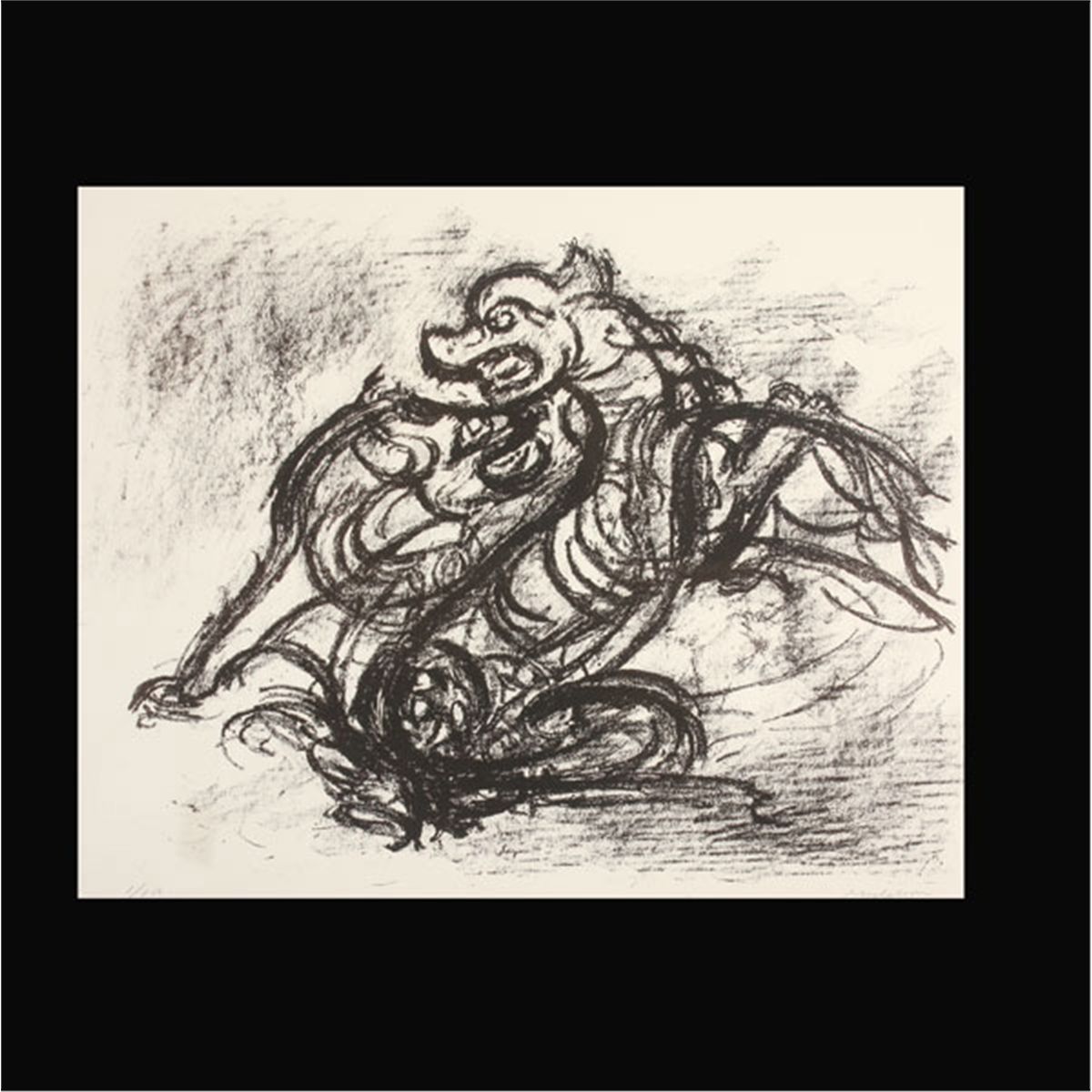 LEO MICHELSON (Latvian/American 1887-1978) Dogs Fighting Lithograph on paper Sight: 20 x 25.50 inches/ 50.8 x 64.8 centimeters Signed lower right "Michelson", Numbered lower left "1/150" Printed at New York Studio by Mourlot Lithographs Frame: 27.75 x 33.25 inches/ 70.5 x 84.5 centimeters In very good condition.  Framed,matted, and glazed