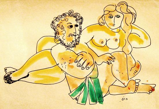 Leo Roth, Israeli Art, 1914 - 2002, Couple, Watercolor and ink, 33x44cm, Signed., , , , ,