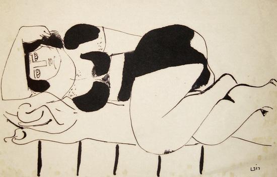 Leo Roth, Israeli Art, 1914 - 2002, Reclining Woman, Ink, 21x33cm, Signed., , , , ,