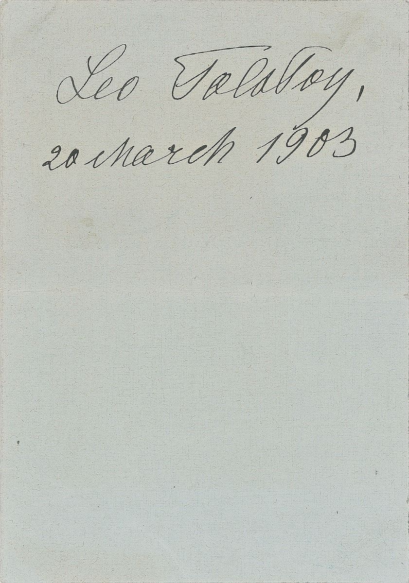 Desirable ink signature, "Leo Tolstoy, 20 March 1903,” on an off-white 3.75 x 5.25 sheet. In fine condition. A ideally crisp example.