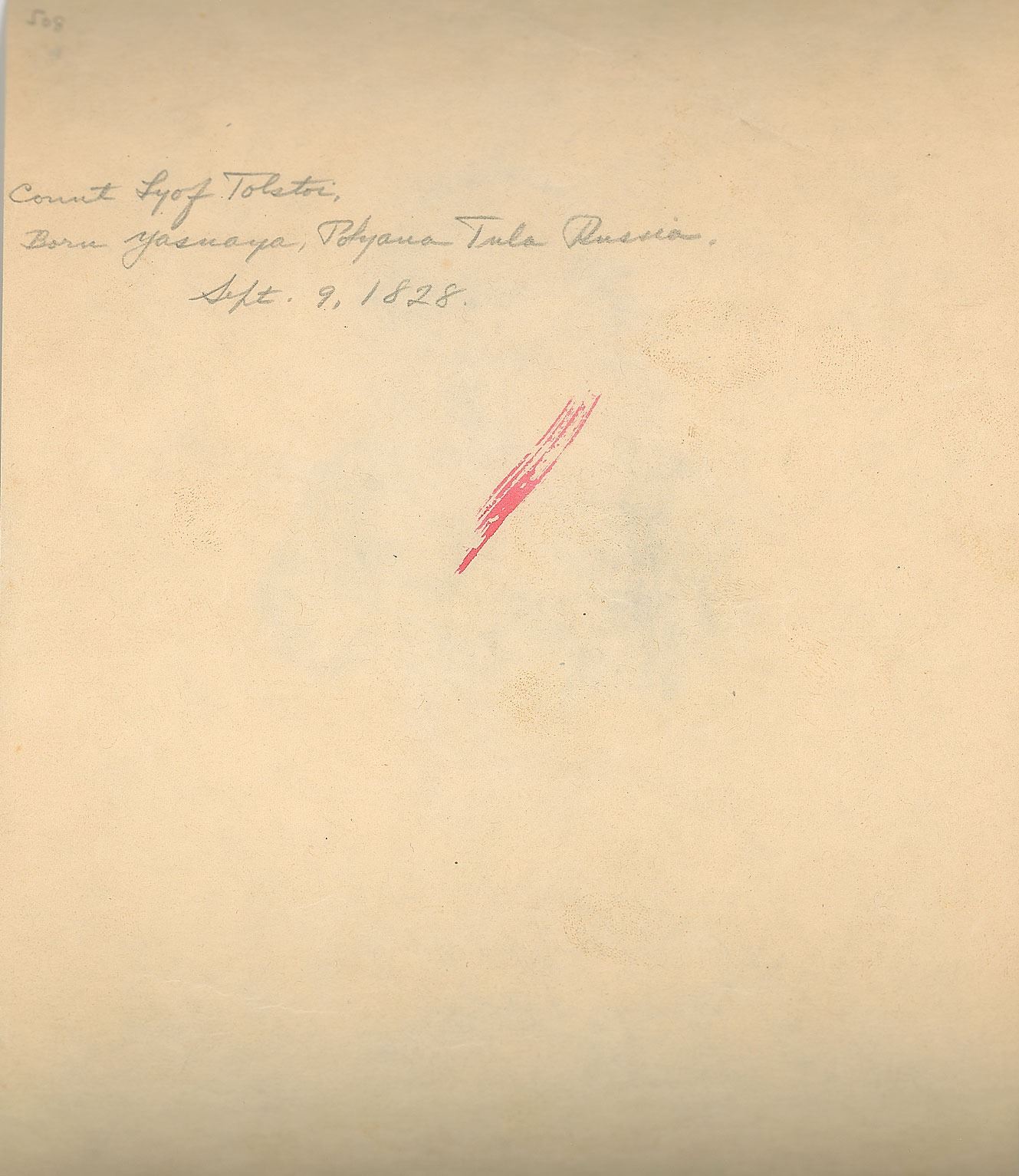 Handsome etching of the revered Russian author in a front-facing pose, 6 x 7.25, boldly signed in the lower border in black ink, "Leo Tolstoy, 2 Febr. 1905." In fine condition. A rare and fabulous lifelike rendering of the prolific writer, whose epic novels War and Peace and Anna Karenina take a place among the greatest works of realist literature.