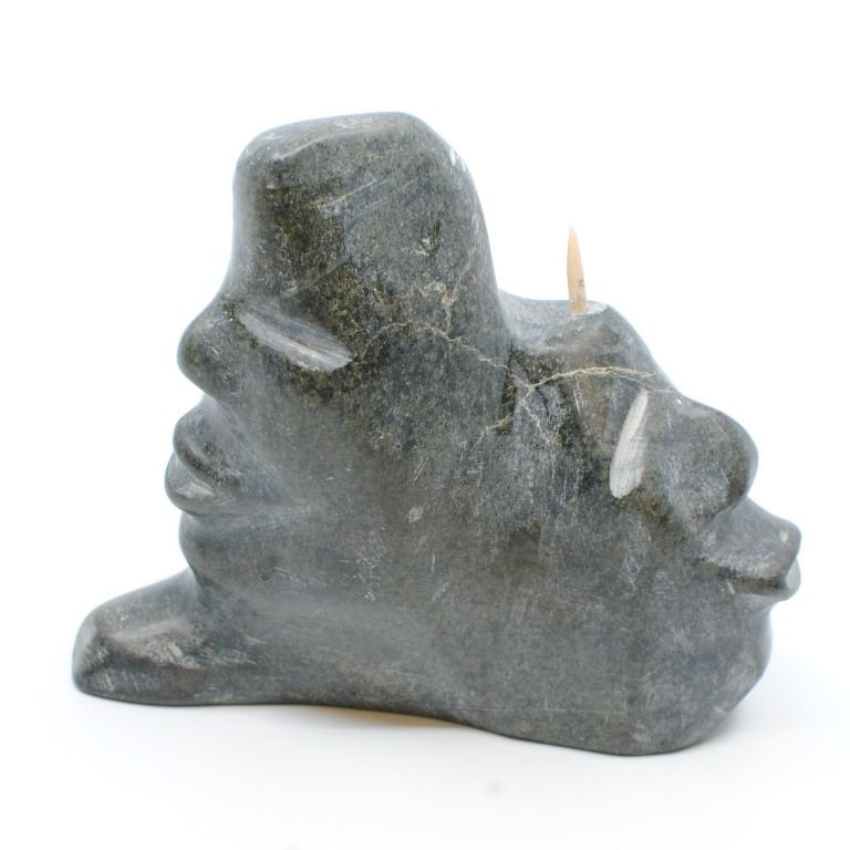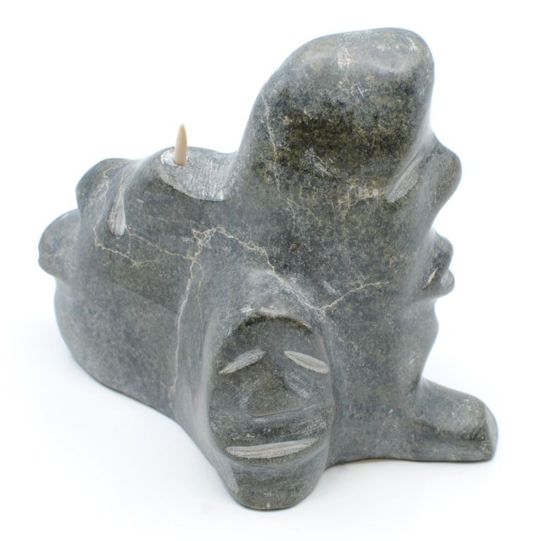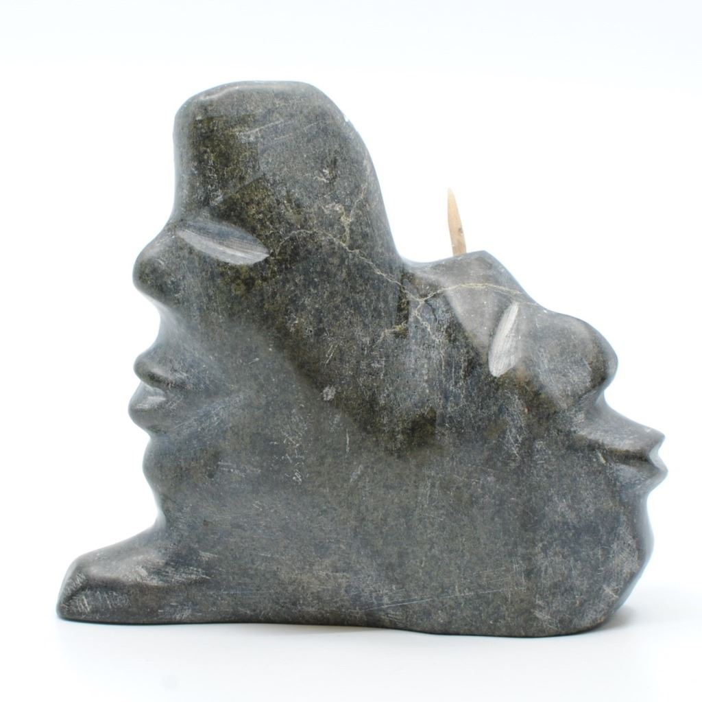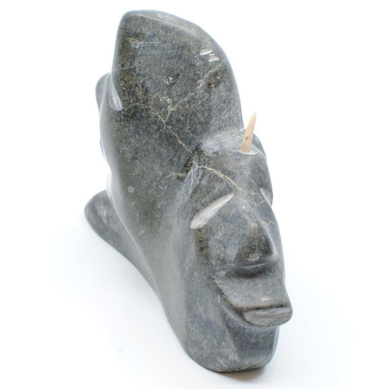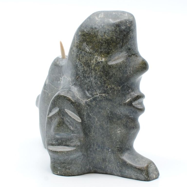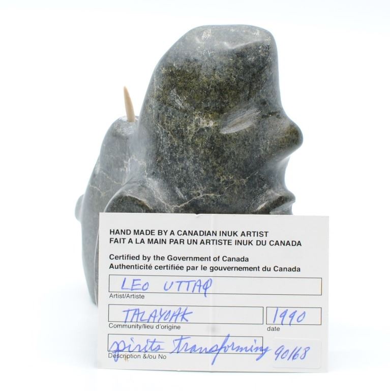 Leo Uttaq's "Spirits Transforming" original Inuit carving. Carved in 1990, from the community of Taloyoak. Carved from stone, and certified by the government of Canada. This carving is in excellent condition. Included with its certification tag.