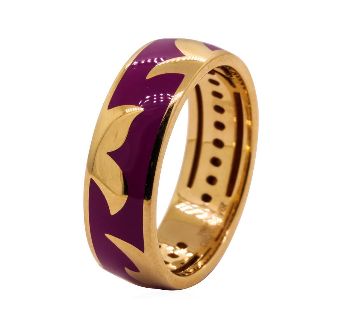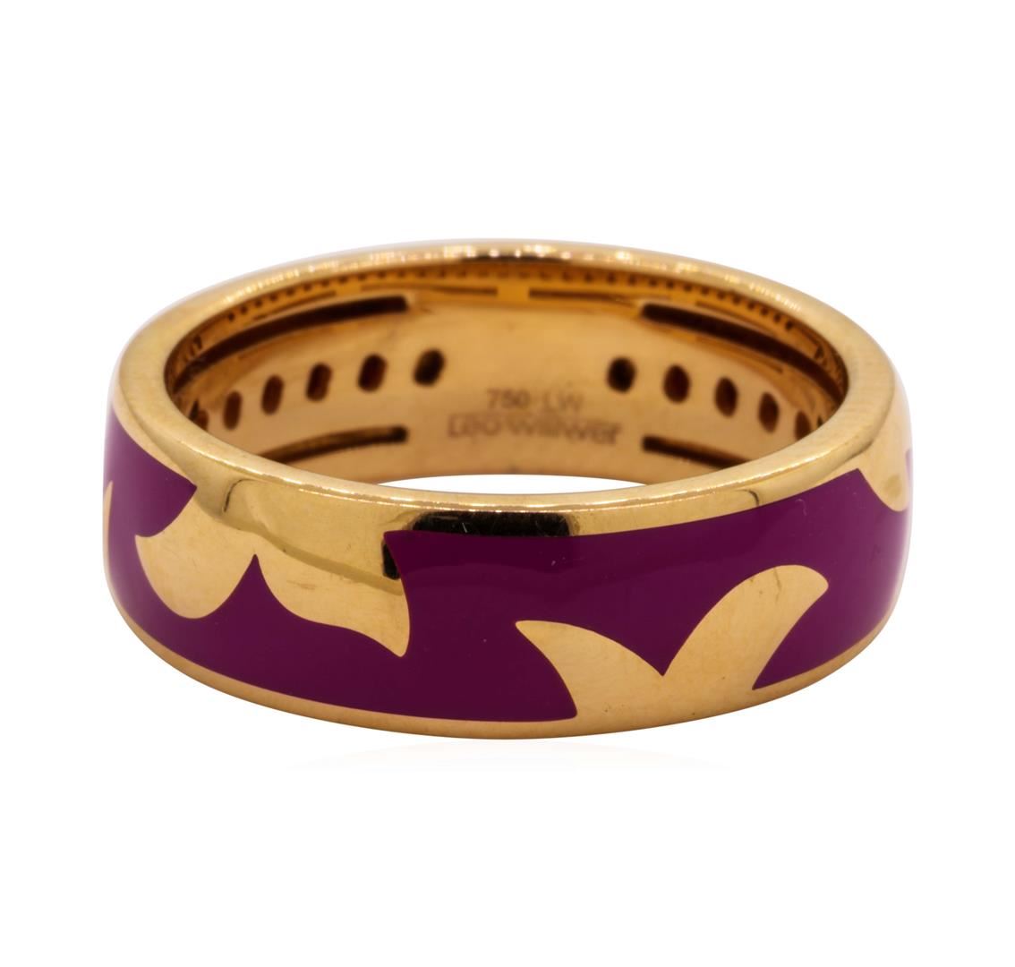 One lady's ring featuring: 18KT white gold weighing 5.6 grams containing inlaid lavender enamel.