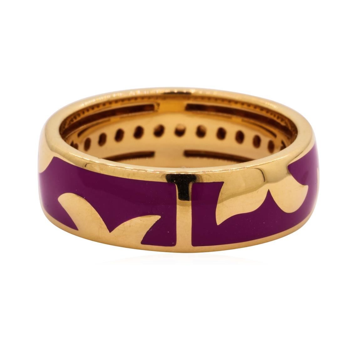 One lady's ring featuring: 18KT white gold weighing 5.6 grams containing inlaid lavender enamel.