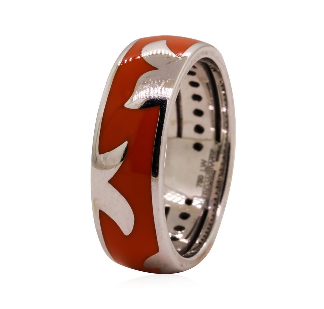 One lady's ring featuring: 18KT white gold weighing 6.5 grams containing inlaid orange enamel.