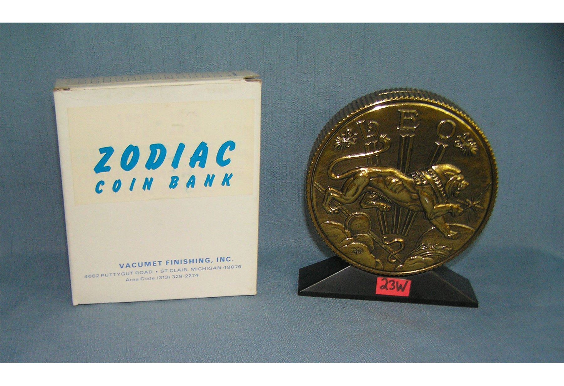 Leo all cast metal Zodiac bank with original box est. value $75.00-$80.00