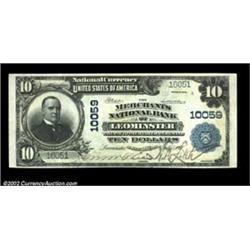 Leominster, MA - $10 1902 Plain Back Fr. 628 The Merchants NB Ch. # 10059A second high grade example, this piece lacking the regional letter. Nice Extremely Fine-About Uncirculated, with a paper inclusion that is as interesting as it is unusual. Important notice: We expect to be auctioning lots at the rate of 200-250 per hour. Sometimes eBay Premier live bid software cannot keep up with that pace, so we strongly recommend that you place a realistic proxy bid now as insurance to avoid disappointment. Also please note that all Heritage/CAA lots purchased through eBay Premier carry a 20% Buyer's Premium. Please make sure you read the Terms and Conditions.
