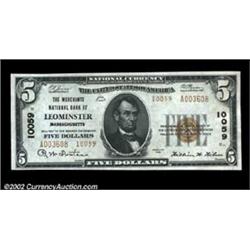 Leominster, MA - $5 1929 Ty. 2 The Merchants NB Ch. # 10059One of a run of about fifty of these turn