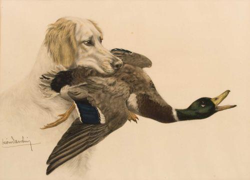 Leon Danching(French-19th Century). 18" x 25". Handcolored lithograph. "Setter & Mallard". Signed LL. (est $400-600)