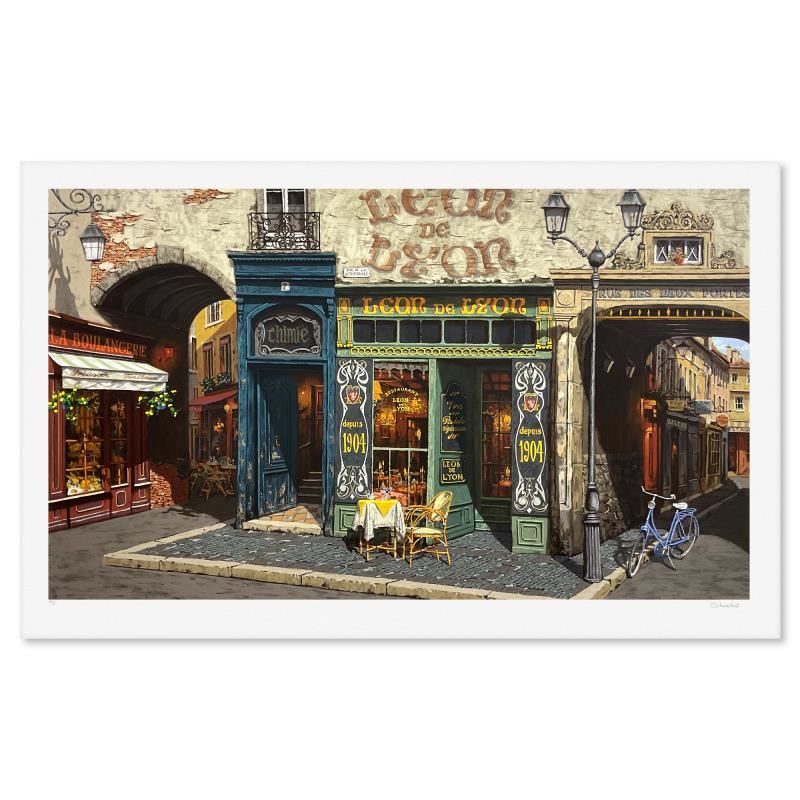 "Leon De Lyon (White)" is a limited edition printer's proof serigraph on paper by Viktor Shvaiko, numbered 1/1 and hand signed by the artist. Includes Letter of Authenticity. Measures approx. 34.5" x 54" (border), 30" x 50" (image).