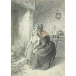 Leon Emile Caille (1836-1907) FrenchPencil,Lady and child before a hearth,Signed and dated 1890,6.5 x 4.75 ins. £200-300