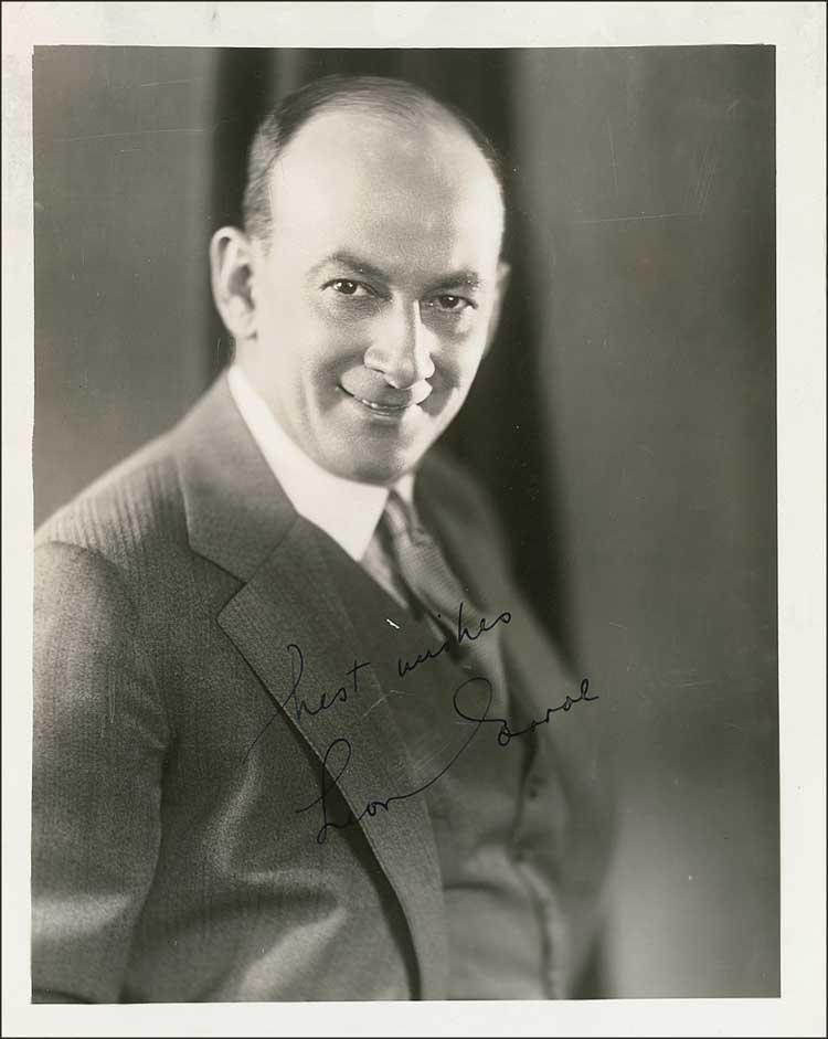Vintage pearl-finish 8 x 10 smiling portrait, signed in blue fountain pen, “Best wishes, Leon Errol.” In fine condition. Pre-certified PSA/DNA and RRAuction COA.