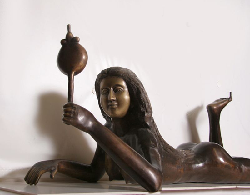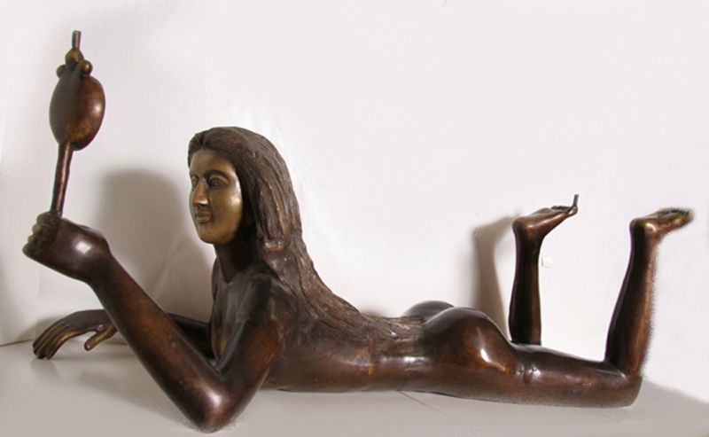 Leon Falconnier, Untitled (Table Stand - Woman with Mirror), Bronze