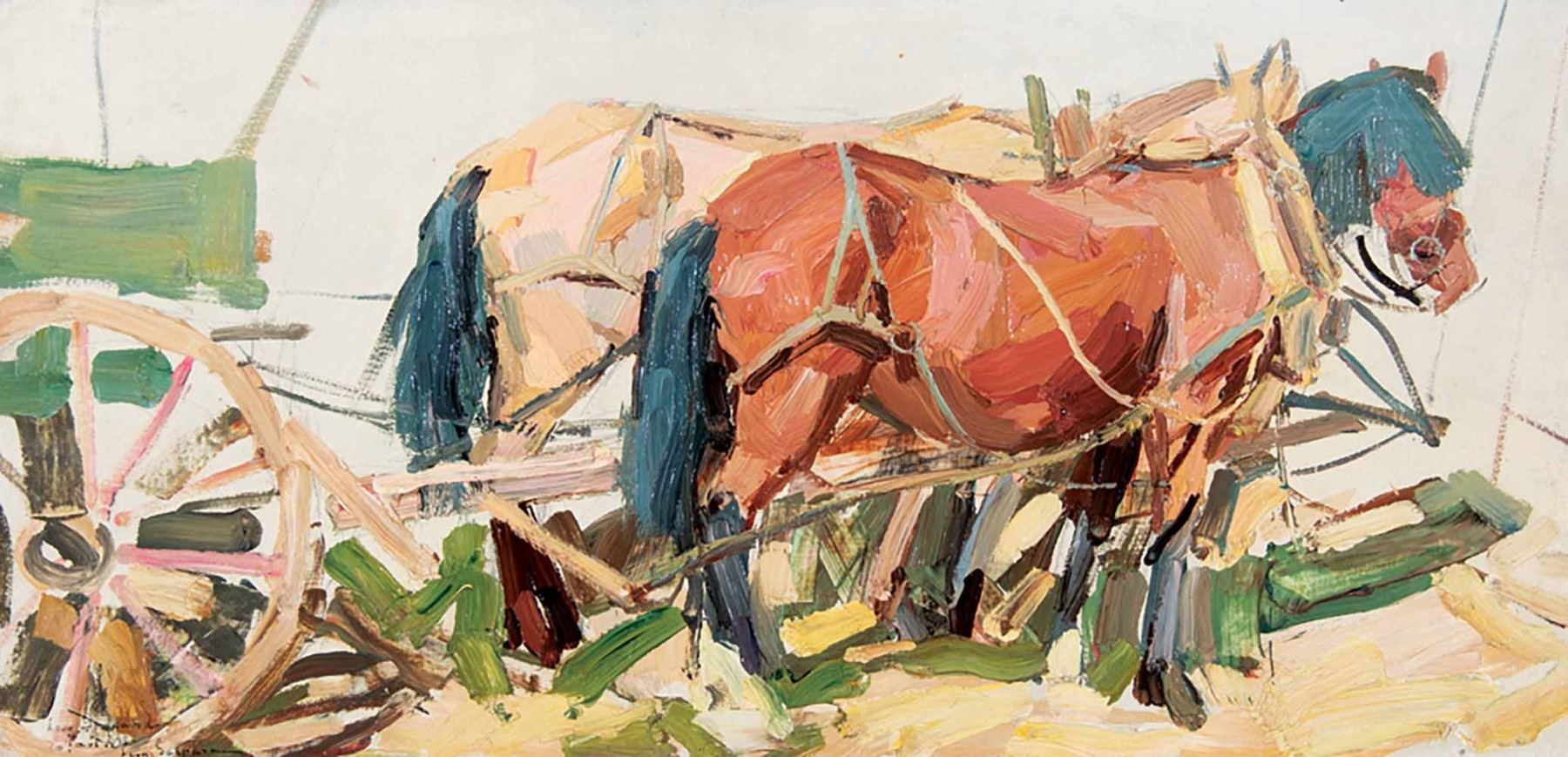 Leon Gaspard 1882-1964 Signed lower left, Taos 1918 11 x 22 1/2 inches. Shipping: 18x30. Oil on board
