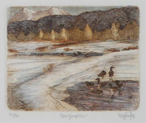Leon Loughridge (20/21st Cent.) 3 Color Etchings "Blue River" 10/40 3 3/8" x 9 1/2" "In the Open" 16/25 5 3/4" x 3 3/4", "Freezing Over" 35/50 3 3/4" x 4 3/4" All signed lower right